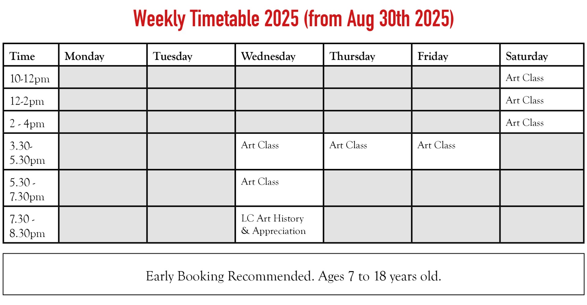 Regular weekly classes at Clarke Art run from the start of September to the end of June, with breaks for school holidays. Art History & Appreciation Leaving Cert grinds will resume on Wednesday September 24th.